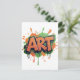 A bold graffiti-style typography artwork bursting with urban energy. The word “ART” explodes from a deep black background in vibrant orange, outlined with neon green accents. Paint splashes and dripping effects add movement and raw street-art attitude, symbolizing creativity without limits. The contrast of sharp lettering and fluid splatters reflects the fearless, expressive nature of modern art culture.