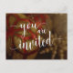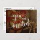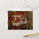 Las palabras "estás invitado" fueron representadas en un hermoso y moderno tipo de letra y añadidas como superposición de imagen. La foto de atrás muestra un grupo de ornamentos de árboles de Navidad, filmados de cerca. Entre las palabras y la foto aparece una superposición negra translúcida, para crear un fondo más oscuro y más contraste. Esta capa se puede eliminar si desea // Usar campos de plantilla en la parte posterior para incluir sus datos personales. // 53 // Foto y diseño de Melody Watson para Paper Muserie.