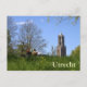 Foto de dos personas sentadas en un banco en un parque en Utrecht (Países Bajos), con vistas a la torre de la iglesia Dom.
