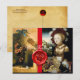 Diseño elegante de uvas colgadas con cinta azul. Hermosa joven rubia con vestido impresionante y joyas de oro con sombrero rojo y plumas blancas sosteniendo un plato lleno de uvas rojas y amarillas, vides, hojas de otoño rojas y verdes con un paisaje de lago en el fondo del pintor alemán Lucas Cranach el Viejo 1530. Collage digital clásico y elegante de estilo vintage. Con pinturas flamencas y alemanas. Este diseño clásico del Renacimiento con sello de cera roja y franja es perfecto para bodas de otoño, celebraciones de aniversario, cumpleaños Sweet 16, guardar la fecha, tarjetas de agradecimiento, baby showers, fiestas navideñas, reuniones familiares. También se puede utilizar como invitaciones para empresas de nutricionistas, dietistas, catering, servicio de comida, preparación o restaurante, catering, industrias vinícolas.