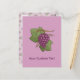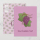 Uvas rojas con hojas. Color de fondo personalizado. Texto personalizado. Patrón sin foco en la parte trasera.