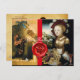 Diseño elegante de uvas colgadas con cinta azul. Hermosa joven rubia con vestido impresionante y joyas de oro con sombrero rojo y plumas blancas sosteniendo un plato lleno de uvas rojas y amarillas, vides, hojas de otoño rojas y verdes con un paisaje de lago en el fondo por el pintor alemán Lucas Cranach el Viejo 1530. Collage digital clásico y elegante de estilo vintage. Con pinturas flamencas y alemanas. Este diseño clásico del Renacimiento con sello de cera rojo y franja es perfecto para bodas de otoño, celebraciones de aniversario, cumpleaños Sweet 16, tarjetas de agradecimiento, baby showers, fiestas navideñas, reuniones familiares. También se puede utilizar como invitaciones para nutricionistas, dietistas, catering, servicio de comida, preparación o restaurante, catering, industrias vinícolas.