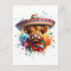 Una vaca de la Cute Highland se vistió por el Cinco de Mayo con un sombrero y un serape.