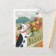 Una ilustración divertida de estilo arte popular de una vaca con un ramo de flores, la tarjeta postal perfecta para cumpleaños y otras felicitaciones para mostrar tu amor a un amante de las vacas.