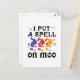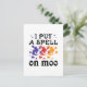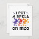 Vaca colorida con manchas de diseño para Halloween con un hechizo de bruja diciendo.