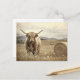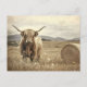 Esta obra de arte de creación digital presenta una majestuosa vaca Highland parada en un campo rústico de heno, con un bale de heno redondo cerca, todo representado en un estilo fotográfico vintage. Los suaves tonos sepia y los detalles en textura evocan el encanto de antaño, perfecto para una casa de campo o una decoración de campo.