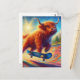 Postal Vaca escocesa de las Highlands colorida en monopat