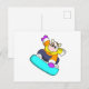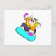 Postal Vaca haciendo snowboard con tabla de nieve