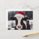 Una adorable vaca blanca y negra lleva un arte generado por Santa hat AI