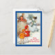 Postal Vacaciones de Snowman, niños y paraguas sonrientes