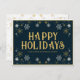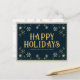 Sencillo Feliz de Vacaciones Postal empresa Azul de Oro de copo de nieve. Personalizar todos los campos de texto para darle un toque especial a su papelería de vacaciones.