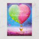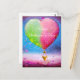 Postal Valentina de globo aerostático rosa y verde
