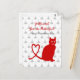 Un famoso escritor escribió Qué mayor regalo que el amor a un gato. El amor existe en muchas formas. Este gato está haciendo una declaración de amor con su cola. ¿Quién será el afortunado? Este diseño muestra la silueta de un gato rojo sobre fondo gris de un patrón blanco redondo en forma de corazones. Utilice este producto cuando sienta la necesidad de enviar un mensaje de amor a su novia o cualquier ocasión o evento romántico o para celebrar al El día de San Valentín. El texto se puede personalizar.