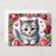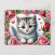 Postal Valentine Kitten with Red Roses