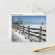 Esta postal crea un clásico ambiente rural de invierno...un campo cercado y la iglesia de campo justo encima de la colina. El cielo es azul contra la nieve blanca pura.