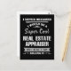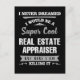 Evaluador inmobiliario - Nunca soñé que sería un excelente evaluador inmobiliario pero aquí lo estoy matando, novedad divertida en letras decorativas mixtas con letras blancas y grises oscuras y adornos de pergamino.