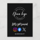 ¡Vamos a conseguir medios sociales! Comparte la emoción e invita a tus clientes y clientes a que se conecten contigo a través de las redes sociales con nuestra postal diseñada por el personalizado. El estilo moderno y vibrante de la letra a mano añade un toque de diversión y creatividad a la tarjeta, marcando el tono para una experiencia animada y atractiva. Esta postal es perfecta para empresas de varias industrias, como salones, estudios de fotografía, restaurantes, cafés y más. El fondo negro aporta un toque elegante y sofisticado, llamándolo visualmente atractivo y llamativo. Resalte su presencia en los medios sociales presentando iconos de color de plataformas populares como Facebook, Instagram y X (antes Twitter). Estos iconos muestran su compromiso activo y alientan a los destinatarios a seguir y participar con su marca. Personalizar la invitación eliminando fácilmente cualquier icono de los medios sociales que no sea relevante para tu negocio. En la parte posterior de la tarjeta postal, está la dirección de retorno, el sitio web y un código QR que se genera instantáneamente para tu sitio web o cualquier otra URL. Este código QR proporciona una forma perfecta para que los destinatarios visiten su sitio web y exploren más acerca de sus productos, servicios o promociones. Personalice el código QR con la dirección URL de su sitio web y el logotipo de su marca, utilizando su logotipo blanco para un aspecto coherente y profesional. Ya sea que estés organizando una gran inauguración, un evento especial, o simplemente quieres aumentar tu presencia en los medios sociales, esta invitación sirve como una poderosa herramienta para conectar con tu público objetivo. Abran la era digital y aprovechen el poder de los medios sociales para expandir su alcance y comprometerse con sus clientes de una manera interactiva y dinámica. Póngase en contacto con info@lddesignloft.com si necesita ayuda con esta plantilla de tarjeta de visita. ©lorenadepante www.lddesignloft.com www.instagram.com/lddesignloft