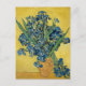 "Iris" (mayo de 1889) de Vincent van Gogh muestra una bella vida quieta de un vibrante ramo de iris en un jarrón amarillo. El fondo es amarillo intenso y cálido, lo que contrasta con los tonos azules de las flores. Los iris, en varios matices de azul, son el punto central de la composición, sus pétalos delicados se despliegan en flor. El jarrón, un recipiente amarillo sencillo pero elegante, resalta aún más los colores vivos de las flores. La composición general refleja el característico y audaz trabajo de Van Gogh y la paleta de colores vivos, haciendo hincapié en la belleza de la naturaleza a través de los contrastes dinámicos.