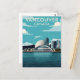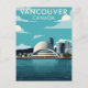 Stylish retro-vintage travel art featuring the iconic Vancouver, Canada skyline and Science World dome. Perfect for travelers, Canadians, and city lovers.