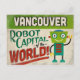 Una divertida postal de viaje vintage de Vancouver Washington que presenta un robot amistoso con un divertido texto de estilo retro que dice: "¡Vancouver, capital robótica del mundo!"