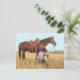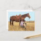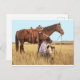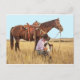 Un vaquero, su caballo y su perro son mostrados en esta hermosa postal