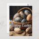 Esta postal de vacaciones cuenta con varios huevos de Pascua únicos que descansan en una hermosa canasta. Por favor, siéntase libre de personalizar de todas las opciones disponibles que desee. #Friends #Family #Relatives #Mother #Fathers #Adolescentes #Adolescentes #Hija