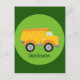 Un camión de basura amarillo sobre un fondo verde claro y oscuro para un niño al que le gustan los vehículos de construcción y los autos. Personaliza con tu nombre de bebé o de niño.