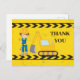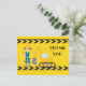 Genial excavadora de construcción personalizada Tarjeta de agradecimiento para un niño que ama los vehículos de construcción amarillos en negro y amarillo. Diseño de vehículo divertido para un niño que ama los coches y camiones. Personaliza con el nombre de tu hijo bajo la cinta de precaución negra y amarilla.