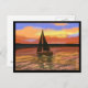 Pintura gráfica de una velera sobre las olas del océano al amanecer. Obra de Magins Creations.