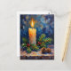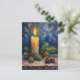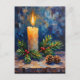 Representación evocadora de una única vela parpadeante que arroja una luz cálida y dorada sobre un estribillo de pino verde y algunos pinos dispersos sobre una superficie oscura y rústica. La rica aplicación de la pintura resalta el brillo de la llama contra las sombras profundas y aterciopeladas del añil y el pepino. Las pinceladas son suaves y evocadoras, resaltando el suave resplandor y la tranquilidad de la escena, creando una sensación de paz y humilde belleza.