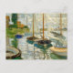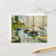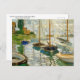 Postal de arte fino con la pintura, veleros en el Sena de Petit-Gennevilliers (1874) de Claude Monet (1840-1926). Un paisaje de barcos amarrados en la playa del río Sena en Francia.