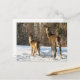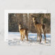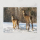 Dos ciervos de cola blanca paran frente a árboles de siempre verde.