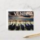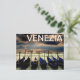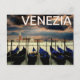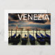 Una hermosa postal de Venecia, Italia, con una línea de góndolas en la parte delantera, el Gran Canal en la parte trasera y la Venezuela escrita al otro lado del cielo. Ideal para vacaciones y turistas en Venecia.