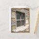 Esta fotografía rústica fue tomada de una ventana de madera acristalada en una réplica de una vieja cabaña pionera en el Medio Oeste rural. La imagen ha sido pintada digitalmente con un cuchillo de paleta y un borde quemado añadido. La postal de la ventana de madera rústica está en blanco y esperando su personalización y nota personal.