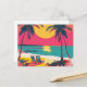 Postal Verano Playa Vibe Retro Surfer Palm Trees Sunset