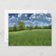 Un paisaje verde rico, con un campo de la hierba alta afilado con los árboles debajo de un cielo azul profundo por completo de nubes. Un árbol muerto gnarled hace una pausa sí mismo en el medio del campo.