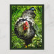 Esta postal presenta el espectacular gallo de Wyandotte plateado con césped verde. Se llama Moe.