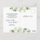 Esta es la moderna tarjeta postal de reprogramación de la fiesta de despedida de soltera con verde y letra negra, es la forma perfecta y elegante de hacer el anuncio de reprogramación a tus amigos y familiares.