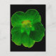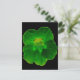 Esta postal contiene una fotografía de una flor de nasturcio. La foto ha sido pintada artificialmente, lo que ha resultado en una flor verde oscuro llena de diferentes tonos que la hacen parecer atractiva y hermosa a la vez. El fondo es negro.