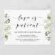 Este es el diseño moderno de Greenery temática, en la tarjeta postal Black font, boda Reprogramdule (postergación) (el amor es paciente). Es la manera perfecta y elegante de hacer la invitación reprogramada a sus amigos y familiares.