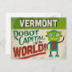 Una divertida postal de viajes vintage de Vermont con un simpático robot con divertido texto de estilo retro que dice: "¡Vermont, capital de robots del mundo!"