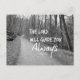 El Señor te guiará con huellas de versos bibliales y posters. Hermoso camino de campo blanco y negro a través de los árboles que presentan las inspiradoras y reconfortantes escrituras de Isaías 58.11: "El Señor siempre te guiará". Ver más en Citas cristianas, (enlace abajo)