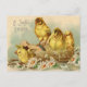 Esta postal cuenta con un ilustracion vintage de alegres pollitas de Pascua en un zapato. Debajo están las margaritas y los sauces. ¡Disfruta enviando este hermoso Vintage y alegre chicles de Pascua en una postal para zapatos a tus amigos y familia esta temporada de Pascua!