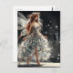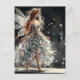 Un lindo hada maqueta un vestido hecho de plástico reciclado con algunos detalles dorados en un espectáculo de moda arte de fantasía
