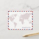 pastel mauve world-map en airmail-frame con cita: viajar es vivir... escribir sobre tus aventuras en todo el mundo