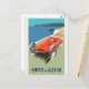¡A cualquiera le encantaría recibir esta tarjeta postal francesa antigua con un ilustracion retro de un coche de carreras en la Costa Azul, Francia!