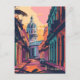 Esta postal de viaje muestra un ilustracion sereno y cálido que representa el horizonte de La Habana. Es una gran postal de estilo colonial para viajeros que planean visitar La Habana o para aquellos que viajan a La Habana y envían una postal a sus familiares o amigos.
