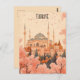 Esta postal de viaje muestra un ilustracion de una mezquita inspirada en la Mezquita Kocatepe de Ankara, Turkiye. Esta postal es perfecta para viajeros que planean visitar Turkiye o para aquellos que viajan por Turkiye y envían una postal a su familia o amigos.