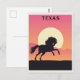 ¡A cualquiera le encantaría recibir esta postal de viaje con un ilustracion retro de un caballo y una montaña al atardecer en Texas!