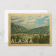Diseño de Alaska en estilo Viaje Vintage con hermosas montañas en esta imagen al aire libre de la naturaleza.